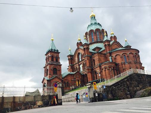 乌斯别斯基东正大教堂(红教堂)建成于1868年,位于卡塔亚诺卡(Katajanokka)区,是西欧最大的东正教教堂。教堂建筑由俄罗斯教堂建筑大师亚历克斯•格诺斯塔耶夫(Aleksei M. Gornostajev)设计。这座教堂位于城市正中心,金色圆顶的红色建筑呈现了受东西方影响的老斯拉夫式传统的外观。教堂大厅内展现了意大利艺术影响下的东正教拜占庭传统风格,也鲜明地反映了俄国文化对芬兰历史的影响。