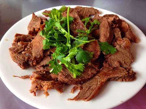 来敦煌了,当然要尝尝敦煌的特色,驴肉黄面了,我是10月的时候去的敦煌,遇到了青旅的老板,是敦煌本地人,所以老板就给我推荐了这家驴肉黄面。