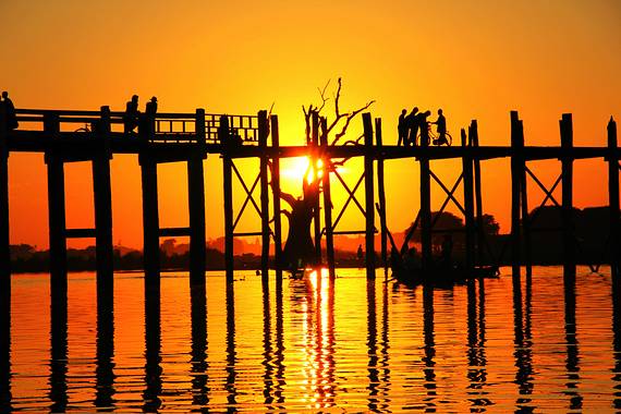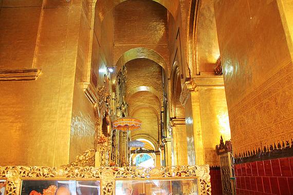 曼德勒山上分布着不少著名的寺庙,无论是纯柚木结构的金色僧院,还是供奉着重达 800 吨大理石佛像的加乌库奇佛塔,又或是号称“世界上最大书”的固都陶碑林,不管你信佛与否,这些历史宗教文化的结晶都值得你沉下心来细细品味。从山脚开始,一路