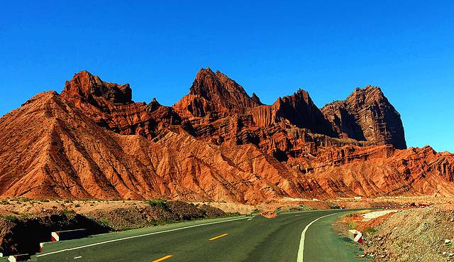 达坂城风力发电站位于乌鲁木齐市区与达坂城区之间的公路旁,由数百座巨大的发电风车组成,是全国最大的风能基地。数百台风力发电机擎天而立、迎风飞旋,在博格达峰清奇峻秀的背景下,在广袤的旷野之上,形成了一个蔚为壮观的风车大世界。这里的朝阳和夕阳往往更加火红,每天日出日落时,风车背后天光似火,是拍出摄影大片的好时机。