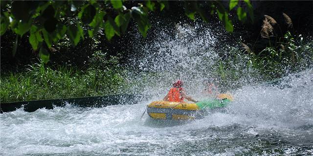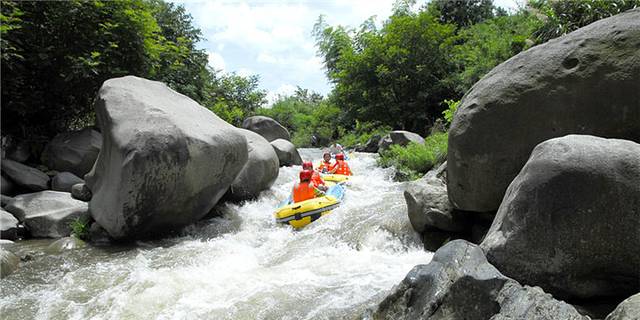 雁荡山仙溪漂流距离雁荡山旅游服务中心车程约20分钟,全长6公里,落差达85米。出发处水流较慢,溪床平缓,游客可以边划皮艇边享受两岸的秀丽风光。当然,你还有另一个选择——打水仗!喜欢打水仗的熊孩子上皮艇之前可别忘了带好武器~ 皮艇到达急流区后水流速度突然加快,落差开始变大,溪道变窄。仙溪漂流可谓真正的刺激担当。小贴士:漂流的时候千万不要把手机钱包直接揣在口袋,近视的朋友最好佩戴隐形眼镜。