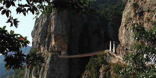 云崖天廊位于北雁荡灵岩景区,栈道中有著名景点方洞,故又名方洞栈道。栈道位于险峻的悬崖之上,沿天然岩层开凿,早些年甚至没有护栏,令人望而生怯。幸好现在已经在栈道外侧围起了栏杆,前往景点游玩的旅客也随之增多。走上栈道,你可以细细观察因火山喷发而形成的岩石,也可以远眺云雾缭绕的雁荡美景。若欲饮用方洞内的滴泉,鼓足勇气走上方洞栈道吧!