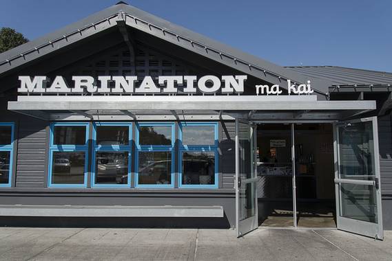 预算紧张又肚子空空的食客到Marination Ma Kai餐厅用餐是明智的选择。这是一家夏威夷风格、经营墨西哥玉米卷的连锁餐厅,菜单上只有1样菜品单价超过10美元。你可以选择不同的玉米卷(铁板牛肉、麻辣猪肉、豆腐),炒饭或油炸玉米粉饼,但无论你对罐头食品有什么先入为主的观念,你一定不要错过罐头汉堡。那柔软的、香甜迷你小汉堡会让外地人理解为什么罐头汉堡会在当地占有一席之地。猪肉被切片后烤制,边缘处有一点焦,之后涂满了Marination餐厅招牌的Nunya酱汁。凉拌卷心菜搭配三明治,凉爽香脆,与肉片的口感形成了鲜明的对比。