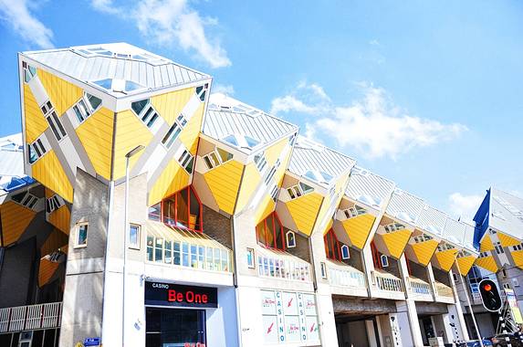 位于鹿特丹市中心的拱形室内市场开放于2014年,离方块屋只有一分钟路程。它是市场与住宅相结合的代表建筑,其中最有特色的便是整个拱形建筑的天花板,描绘各种各样的蔬菜瓜果和花卉,色彩斑斓。而整个建筑除了拱形的市场,其他楼层都是市民的住宅屋,还包括地下停车场。市场里聚集了来自世界各地的特色美食商铺,不仅可以让你在里面大快朵颐,还能买到称心如意的纪念品。