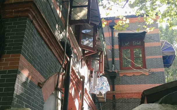 溧阳路原名狄思威路,马路两边都是花园洋房建筑群,据说这条路上一共有包括郭沫若旧居(溧阳路1269号),鲁迅藏书室(溧阳路1359号)等在内的48幢花园洋房,它们的建造时间大都是上个世纪二、三十年代,所以都是一样的灰砖红瓦。