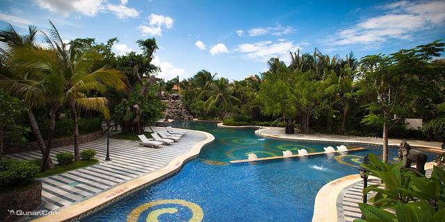 观澜湖旅游景区坐落在一片碧绿的热带雨林之中,温泉其实是度假区的一个项目,园区内的温泉和别处不同,这里好像一个主题公园一样,整个规划犹如一个温泉的世界之窗一样,让你可以轻松找到自己喜欢的风格,从欧洲泡到亚洲,再从亚洲泡到非洲。