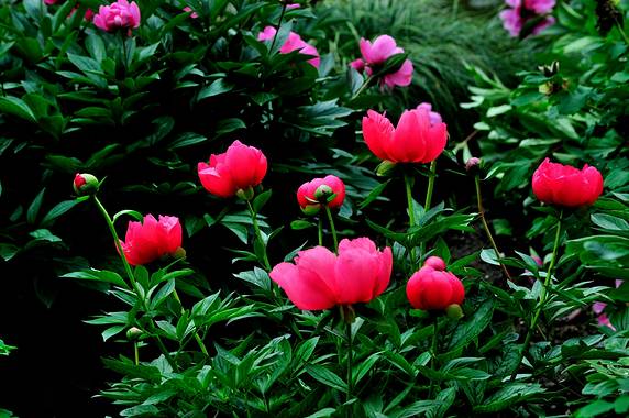 景山公园的芍药是北京芍药之最,公园里有近200个品种,2000丛芍药。公园里到处都有芍药的身影,在南门西侧和西门南侧(柿树林)中有大面积的芍药园,西门里北侧是一大片与众不同的欧洲芍药,在东门里的牡丹园西部也有一大片芍药花。5月正是芍药盛开的好时节,在景山公园看故宫全景的同时,也别忘了欣赏这满园的晚春景色哦~