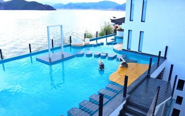 客栈有一个与泸沽湖相连的水池,带给你独特体验