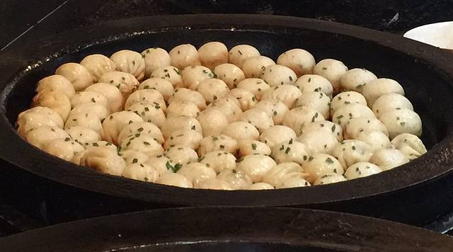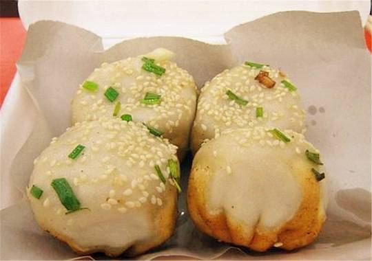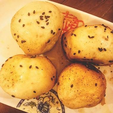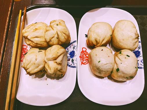 皮薄肉多,汤汁清甜,底层煎的焦焦黄黄,上面撒一层黑芝麻与葱花,口感香脆