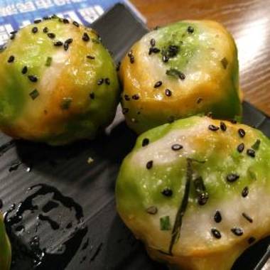 生煎颜值都很高,绿色的荠菜生煎,三色的三拼生煎