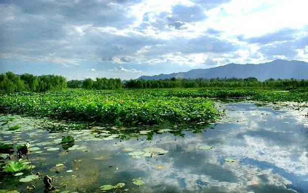 雁栖湖因截雁栖河水而成,水量丰富,水质清澈,常有大雁、天鹅等珍禽候鸟在此栖息,故称雁栖湖。