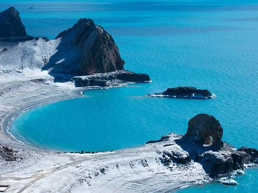 纳木措是每一个去西藏的人都要打卡的地方,五六月份的圣湖,在靠近岸边的地方仍被白白的冰雪覆盖,与湖水本身的颜色,形成了鲜明对比