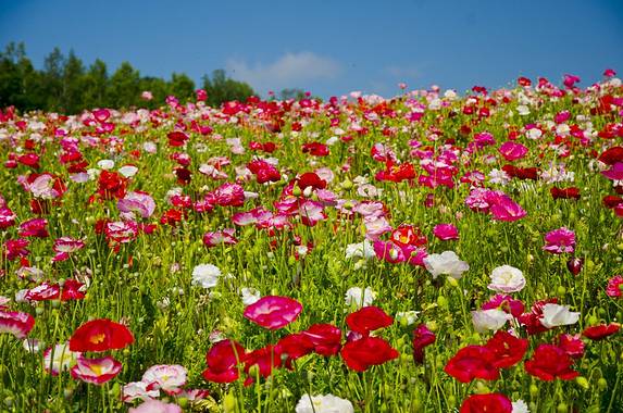 富良野每年五月至十月都有不同品种的花,其中以七八月的薰衣草花海最为著名。农场喜欢把不同的花分布种植,形成花布之路。来这里拍照再好不过啦!一起来看看它们都在哪里吧!