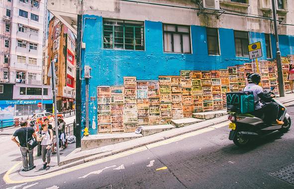 嘉咸街露天市集是最古老的露天市场之一, 街上有不少各式各样的小商小贩,是香港最市井的一面。《重庆森林》里梁朝伟扛着菜和王菲一起走的就是这个地方。 在靠近中环荷里活道的路口有一处涂鸦墙,是拍照胜地。