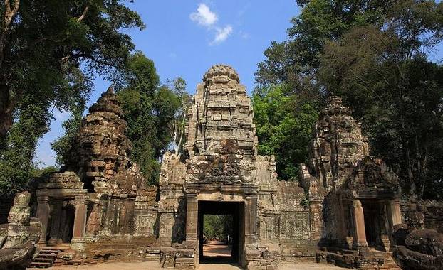 由于建造这座寺庙最初所使用的材料是沙岩,所以很多建筑都已经损毁,而且很难再被复原。寺内的杂草丛生,寺庙坍塌,都体现出了一片荒凉又神秘的气息。