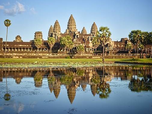 吴哥窟是对吴哥古迹群的统称,被誉为古代东方四大奇迹之一,其中吴哥寺的造型还成为了柬埔寨的标志被印在国旗上。