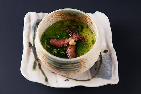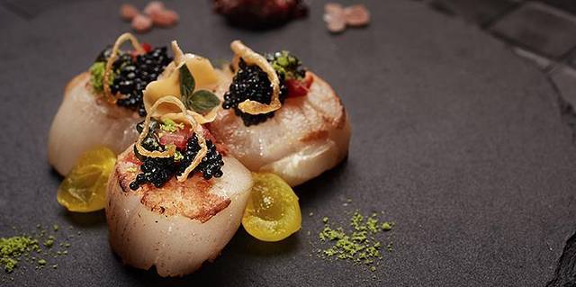 紫萱度假村的一方小院,全是植被与青苔散出来的自然气息,夜幕下那仅有七间亮灯的透明包间里看进去是对面而坐的情侣。主厨和店长都是日本人,料理极度精致,享用过程非常有仪式感!