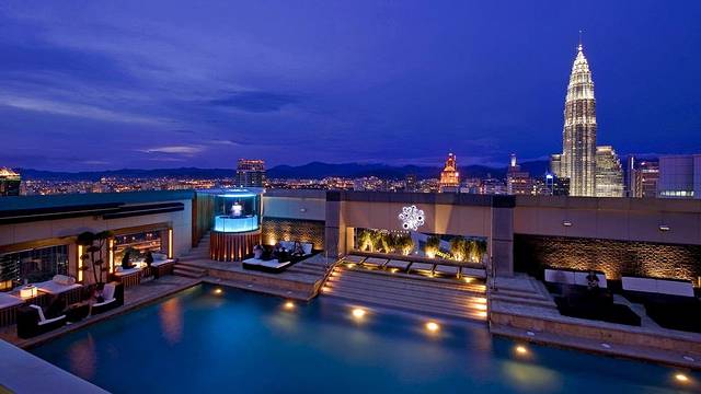 顶楼露天浴池可看到吉隆坡塔和双子塔的一半