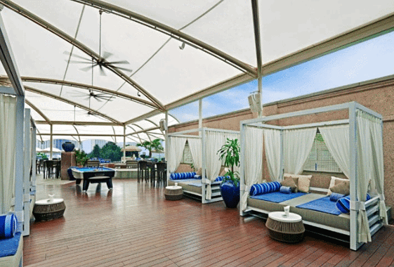提供露天池畔餐饮体验,可以边看风景边吃美食