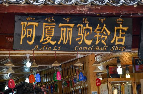 阿厦丽驼铃店是丽江最著名的几家店铺之一,因为电视剧《一米阳光》而声名大噪,以出售各种手工驼铃为主。