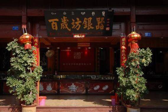 百岁坊是云南银器的老字号,有上百年历史了,在丽江、昆明等云南各城市开了很多家分店。这里的银器质量有保证,用纯正的雪花银为原料,保证纯度。另外银器的打造手艺也很好,款式多样精美,是手信的好选择。