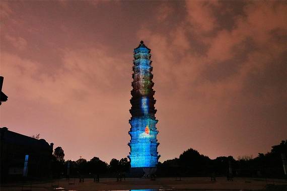 开封铁塔因外壁镶嵌褐色琉璃砖,远看似铁色,俗称“铁塔”