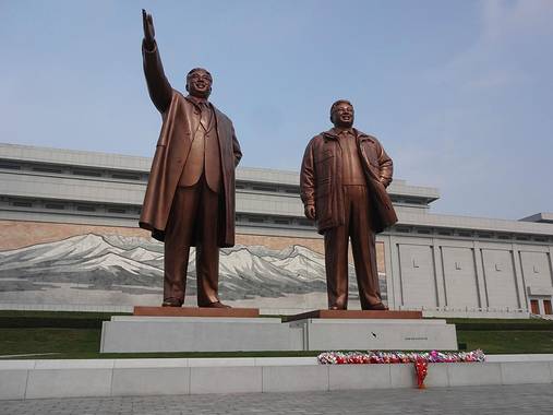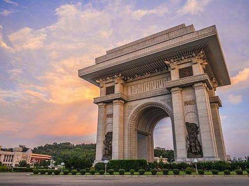 金家三代都是在这里接受人民的欢呼。金日成广场的南北分别是主题思想塔和人民大学习堂。两边是朝鲜革命博物馆等场馆,整个广场干净、整洁,秩序井然,也比较宏伟。
