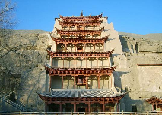 莫高窟也称千佛洞,位于敦煌市区的东南侧。石窟始建于东晋十六国时期,石窟开凿历经了千年,直到元朝结束。在这里可以欣赏到规模浩大内容丰富的石窟和壁画艺术。然而近年来随着生态的不断恶化,风沙对崖体的风化侵蚀以及对壁画的腐蚀都变得越来越严重。而游客呼出的气体对壁画也会起到破坏作用。