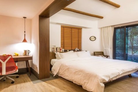 香巴拉由一对台湾设计师夫妇所设计,将一栋半山腰上的老农舍修旧如旧,有露天阳台,可以望尽莫干美景或者数着星星安然入睡。