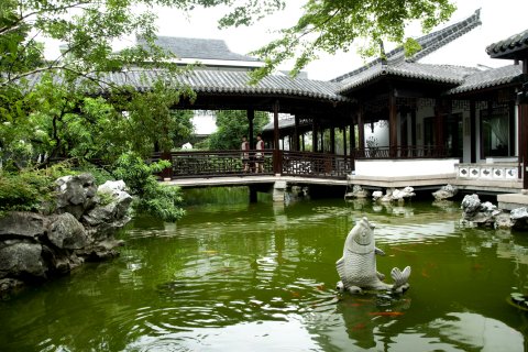 金鸡湖畔,结合传统园林和现代建筑,有私人书屋