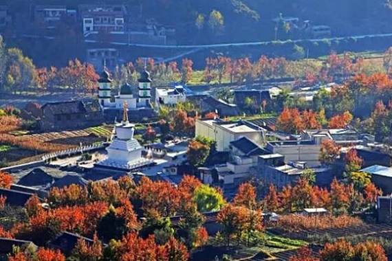 这里的红叶与普通的枫树、桦树红叶彩林不同,是由数万株高山雪梨形成的壮观景象。由于梨树树叶变色较晚,这里的最佳赏叶时间在每年的11月10日-25日。梨树最为密集的世外梨园景区、观音桥景区和嘎达山彩林是金川红叶的最佳观赏地。