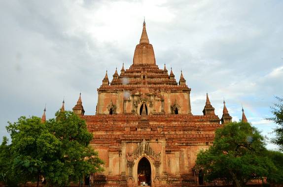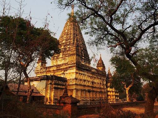 摩诃菩提寺是蒲甘唯一的印度孟加拉风格的佛塔,是在1215年建造的,在佛塔周围兴建了6座小佛塔,形如众星捧月一般。