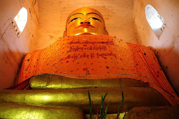 佛塔建于1059年,前堂有三尊坐佛,后堂有一尊卧佛,佛陀呈吉祥卧的姿势。卧佛这样的设计似乎是在表示他对囚居生活的不满。