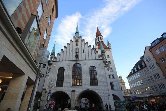 慕尼黑旧市政厅(Altes Rathaus)位于玛利亚广场的东侧,是1874年以前的慕尼黑市政厅,在二战期间这座建筑受损严重,其尖顶直到1971-1974年才得以重建。