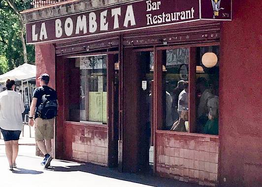 La Bombeta是一家主打欧洲菜的西式餐厅,餐厅靠近港口,地理位置绝佳,餐厅很小但是人气很高,服务十分热情。这里的披萨、海鲜料理、和Bomba很受欢迎,这家店有一大特色,就是他们不说英语,所有服务生都是50岁以上的西班牙老伯。甚至在吧台上方,他们挂着大大的标语"No hablamos inglés, pero hacemos unas bombas cojonudas(虽然我们不说英语,但是我们做的BOMBA可是赞爆了)。