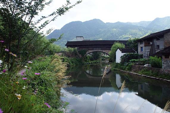 月山村首尾各有一块田洋,分别称为“考坑垟”和“梅花垟”,六座古廊桥形如长虹卧波,展现出一幅“小桥、流水、人家”那恬然而优美的画卷,置身其中,宛若人间仙境。