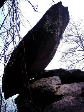 岩、崖、峰,最令人胆战心惊的是那巍然突起的吓纱崖。对面高溪边名为石井的圆柱形石峰之上,有一块方形的千吨巨岩,称为井盖石。