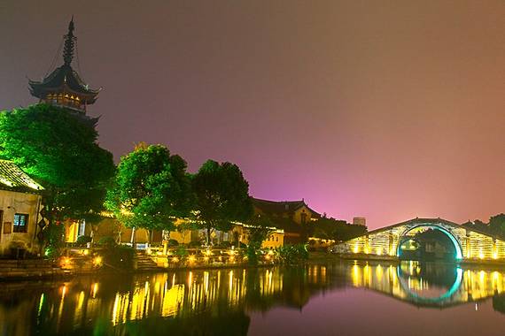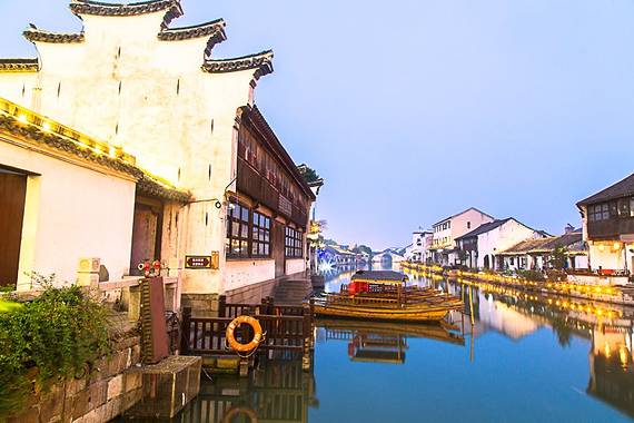 白墙黑瓦的江南水乡建筑沿河排开,地标慈云寺塔静静倒映河中,比起同属苏州的周庄、同里,震泽没有那么多游客,可以安静地欣赏古镇的柔美。震泽还是篮球巨星姚明的故乡。