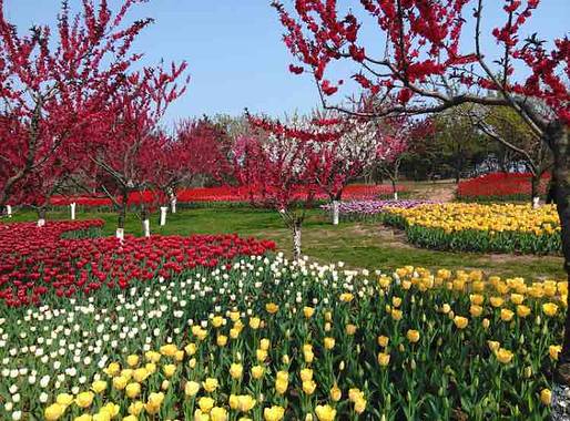 从春到秋,整个园区花团锦簇,数百种花朵,数百万株各类花卉次第开放