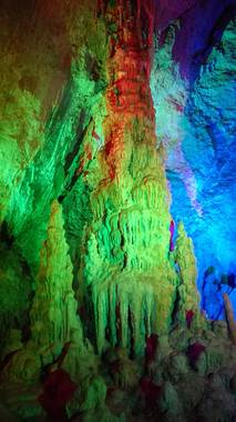 石钟乳千姿百态,可以乘滑梯赏溶洞