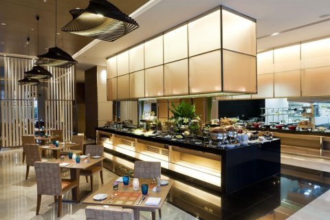 酒店大厅很豪华,早餐非常丰富,种类超多可以供人们尽情选择。14楼有无边泳池,看黄昏和夜景都很漂亮~无边泳池旁边就是个小酒水吧,可以点东西吃喝,很方便。