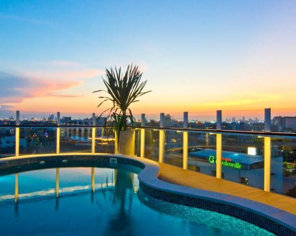 进入酒店大堂,结合泰式风情的美式风格扑面而来。房间拥有整面的落地窗让人视野开阔,紫色的布艺沙发、墙上的挂画与地毯,极富热带特色的鲜艳色彩结合代表本土元素的各类装饰显得时尚而绚丽。高层有无边泳池,基本上入住的客人都会来此拍照留念。