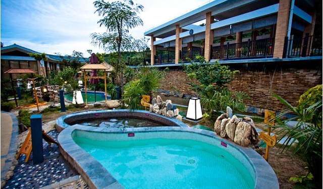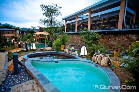 室外温泉依山而建,环境清幽,适宜度假出游。