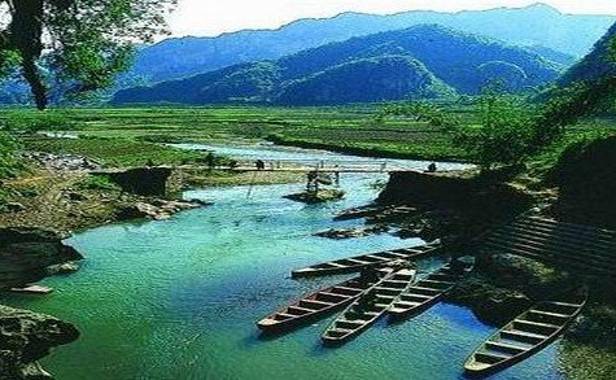 “坝美”是壮语的音译,意为“森林中的洞口”,在这可以感受到陶渊明描写的世外桃源的模样。进出坝美村必须经过水路,先坐马车再坐船,船夫用竹竿划船经过幽深昏暗的水洞。快到村口的时候,一道强光摄入眼帘,然后可以看到小桥、流水、水车、青山、花草和房屋,不由得感慨世外桃源就是如此了!