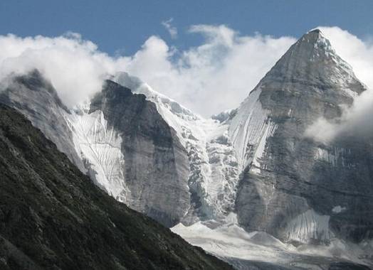 整个雪山呈环型冰斗下斜造型,所以从两侧观看时,山峰始终面朝着我们。仙乃日浑身浸透高贵气质。顶峰终年积雪不化,其山形酷似一个身体后仰的大佛,傲然端坐在莲花座里,怀中抱着一个巨大的佛塔,阳光照在仙乃日神山上金光灿灿。