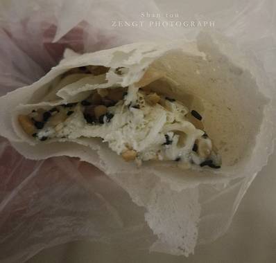 一张风吹饼,卷着糖浆拉拔成的白色长条糖葱,配以芝麻和香菜,一口下去,酥脆、甘甜,来玩的小伙伴一定不能错过哦~