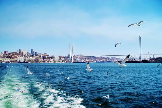 位于海参崴的核心区,就在阿穆尔湾正中间,离列宁纪念碑非常近。