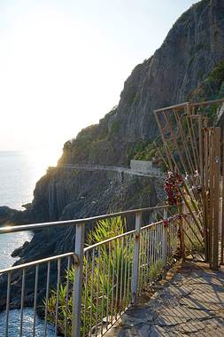 爱之路是连接马纳罗拉和里奥马焦雷的狭长小道,它是五渔村的徒步线路中最短也最舒适的一条,只需20分钟就能走完全程。路虽不长,但风景十分可人:一边是巨大的石壁和梯田,另一边则是悬崖峭壁,海水拍岸的声音仿佛就在耳边。