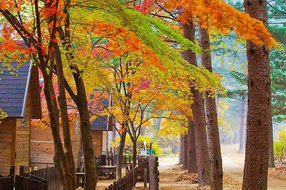 林荫路上也会铺满一层厚厚的落叶,脚一踩上去就能发出“嘎吱、嘎吱”的声音~