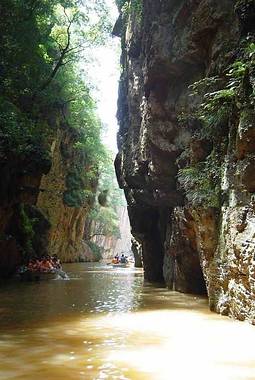 河两岸壁立,藤萝、古树顽强地在石缝中生长。
